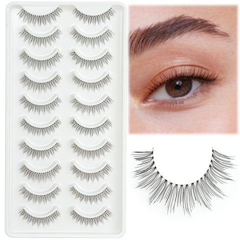 EMEDA-pestañas de visón de imitación de seda suave, paquete de pestañas transparentes finas hechas a mano, 10 pares, 5 unidades